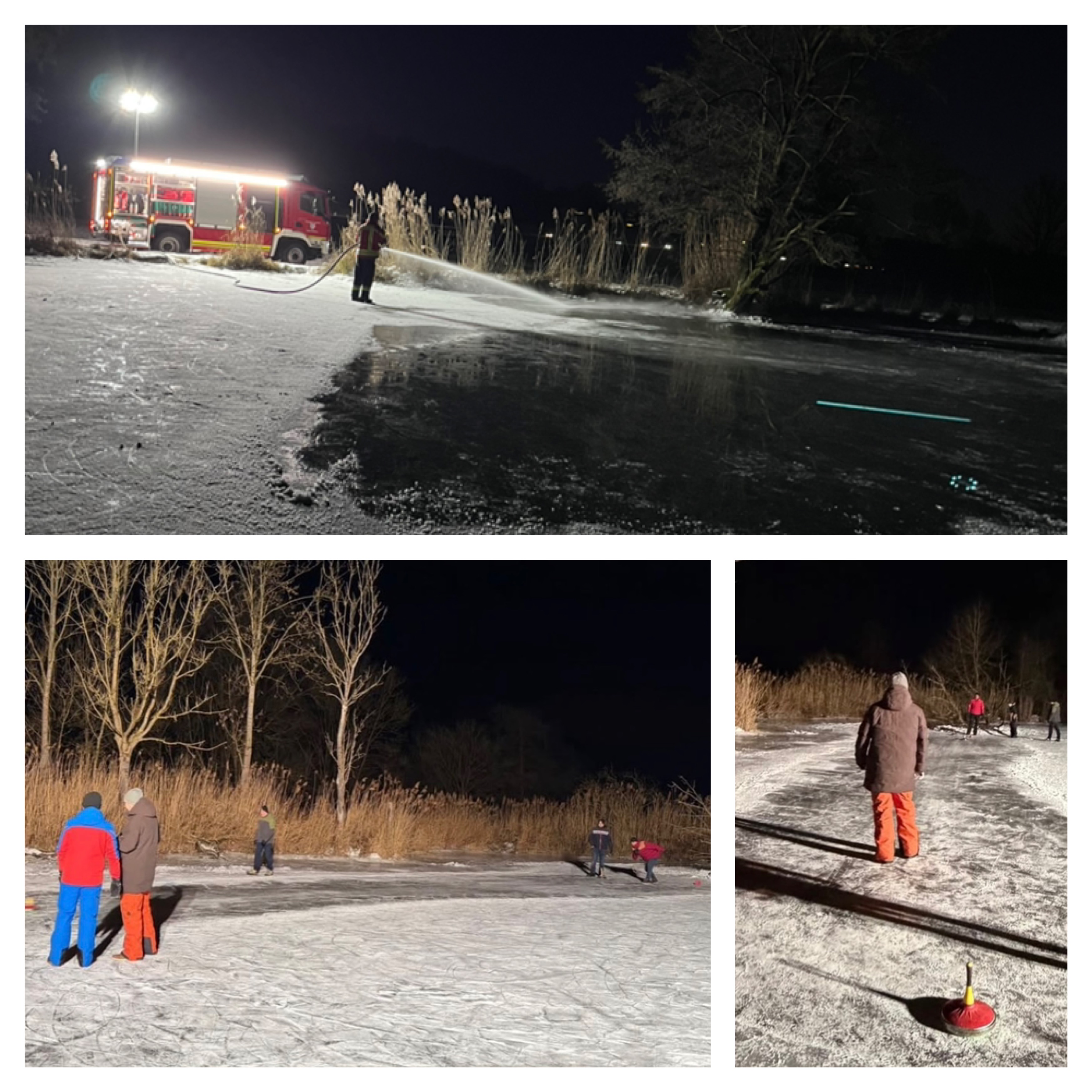 Am vergangenen Abend veranstaltete die Feuerwehr Vilsbiburg ein stimmungsvolles Eisstockschießen an der Vils. Dank des Engagements der Feuerwehr präsentierte sich die Eisfläche in hervorragendem Zustand: Das Team hatte das Eis im Vorfeld mit Wasser aufbereitet und für optimale Bedingungen gesorgt. Zusätzlich wurde der gesamte Bereich ausgeleuchtet, sodass die Teilnehmerinnen und Teilnehmer auch nach Einbruch der Dunkelheit beste Sichtverhältnisse hatten.