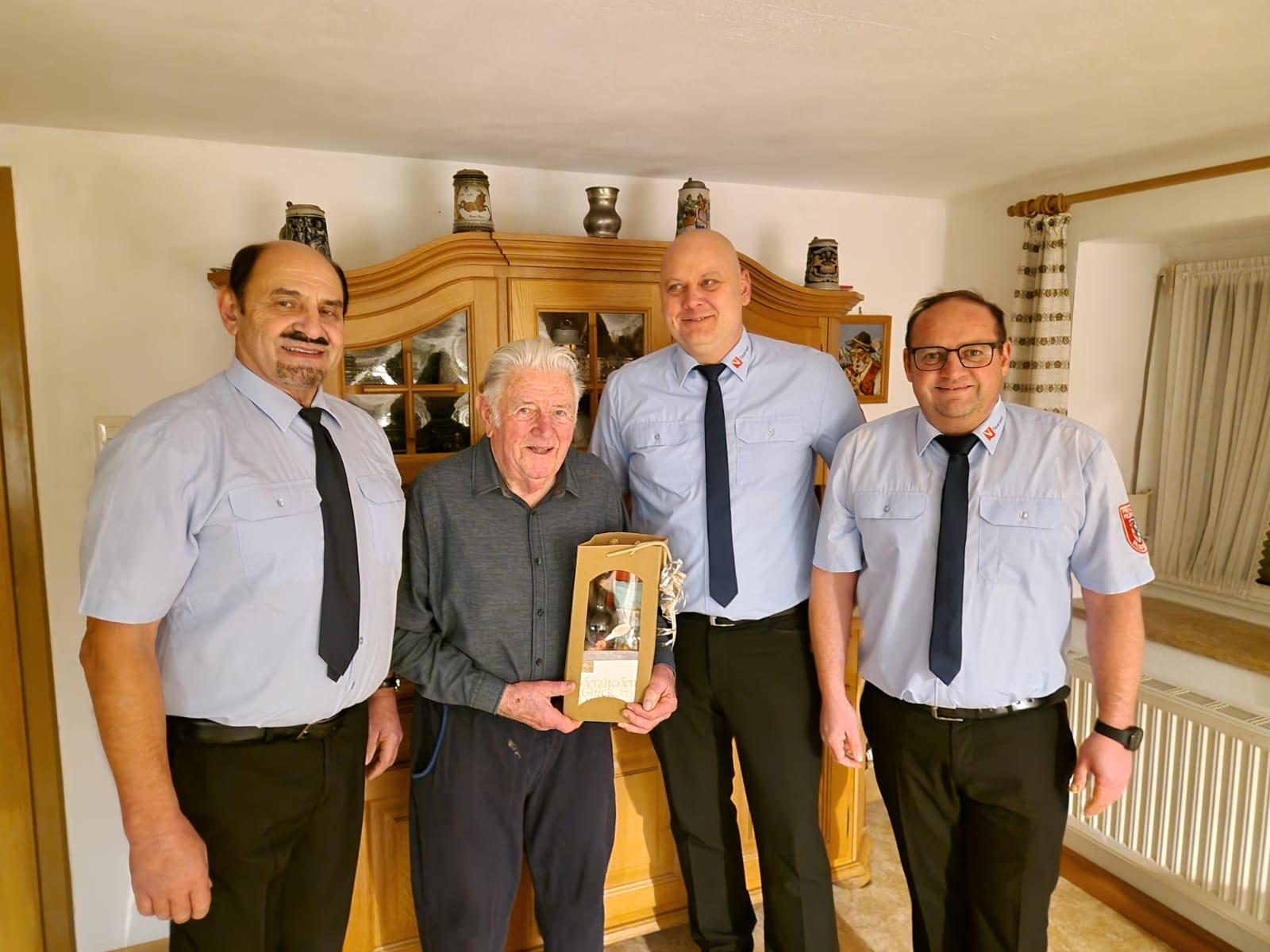 Die Freiwillige Feuerwehr Vilsbiburg gratulierte ihrem langjährigen Mitglied Richard Schachtner herzlich zu seinem 90. Geburtstag. Zu diesem besonderen Anlass besuchte ihn eine Delegation bestehend aus Vorstand Michael Knepper, Daniel Böhm sowie Martin Huber.